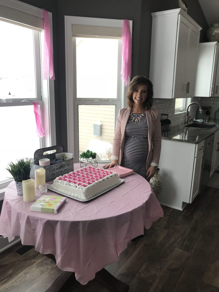 In this photo you can tell it was my first shower by that little baby bump! It’s much bigger now, but I still wear this outfit! This is one of the looks from my last post: “How to Style Your Pregnancy Without Breaking the Bank”